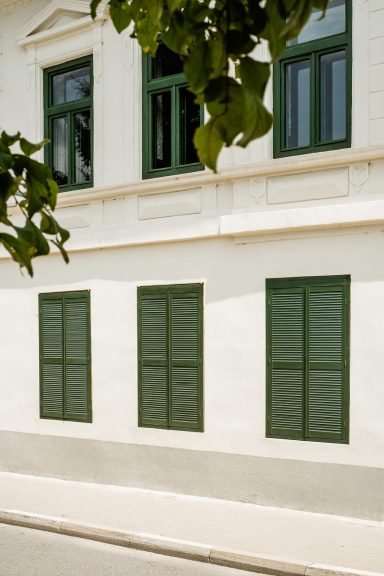 Das Ensemble besteht aus vier Gebäuden, die in U-Form angeordnet sind und einen geschützten Innenhof bilden.